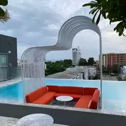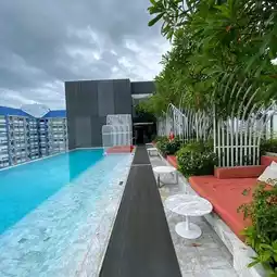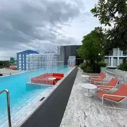 There is a small gym and Som Bar. The swimming pool is on the 6th floor, with a depth of 1.2 meters and a length of 22.7 meters. The atmosphere is nice. Som Bar offers a cocktail promotion from 9 PM to 11 PM at 599 THB, which is a good price.
