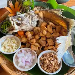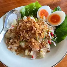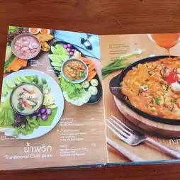 🍲🥗 The menu here has both savory and sweet dishes to choose from, focusing mainly on Thai food, such as Tom Yum Kung Luk Tan 🦐 Pad Sam Chun 🐙 Squid Eggs Fried in Fish Sauce Fried cotton fish with herbs 🐟 The taste is very strong and rich. And what you can't miss is the crab egg chili paste 🦀 served with fresh vegetables and lots of crab eggs. Delicious and satisfying. If you come to visit Hua Hin, I recommend you try it.