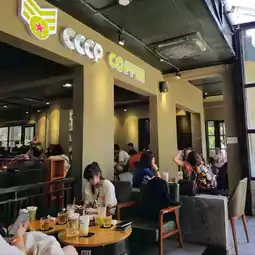 🎡 The shop is decorated in green tones, contrasting with white and dark brown wooden furniture, giving a comfortable feeling. The interior of the shop is spacious and not crowded at all. There are many seating areas to choose from.