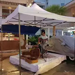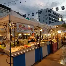 Another recommended night market is the new addition to Hua Hin's night markets. It's small and compact, featuring live music from singers, allowing you to enjoy the chill atmosphere while dining and appreciating art and handmade crafts. Additionally, it's close to the Hua Hin Night Market. Inside this market, there are various food stalls and a gallery to explore, along with trendy photo spots. If you visit Hua Hin, don't miss the chance to check in and take photos at this market.