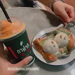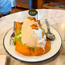 A shop for those with a sweet tooth who come to Hua Hin, you shouldn't miss it. The highlighted drink menu is Thai tea Slurpee, delicious, strong, not too sweet, followed by toast with pandan custard and coconut ice cream that is very strong, fragrant and smooth. In addition, there are many other menus to choose from. The atmosphere inside the shop is beautifully decorated. There is a photo corner. Don't forget to come and try it. 💚