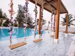 #Get a discount without relying on luck. A seaside cafe with a poolside seating area. Caraspace Hua Hin. Come sit and enjoy the sea breeze in Hua Hin. The atmosphere is very good. There is a booth for taking pictures and posting them on social media to show off to friends. There is also a cake painting activity. If you come, you have to book in advance or it will be full. It's very good. There are also healthy drinks and fruit menus. There is an air-conditioned room inside. Girls, you have to check in. #travel #cafe #cafe review