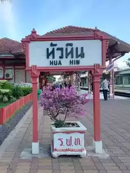 ✨Let's take the train to Hua Hin. Hua Hin is another popular tourist destination in Prachuap Khiri Khan Province that everyone is very familiar with. If anyone has a short holiday and is looking for a place to visit near Bangkok, I recommend taking the train to Hua Hin. Traveling from Hua Lamphong Station, you will have the opportunity to sit without having to stand. Prices start at 47 baht and go up to hundreds, depending on which train you choose. The journey takes about 5 hours. If you are afraid of being hungry, don't forget to bring food with you. But they also have things to sell on the train. And don't forget to take a picture with Hua Hin Railway Station, another landmark that you must check in. Then pack your bags and go explore the world.