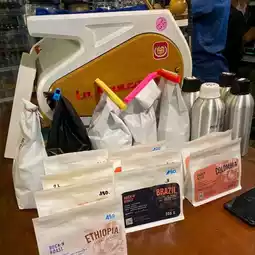 ❤️Velo Cafe Hua Hin❤️ is a super cool cafe in Hua Hin. The coffee is excellent and very aromatic, with a variety of beans to choose from. The coolness doesn't stop at the coffee beans; it extends to the sustainable packaging. They use cans as take-away cups, which can be recycled. The owner or staff are very kind and will educate you about the can packaging.