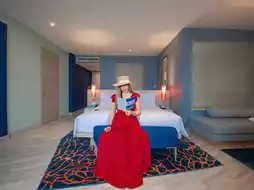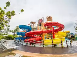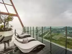#Luxury hotel #100 ways to travel 5-star accommodation in Hua Hin with a large and magnificent water park with many rides, rooms decorated in a luxurious style, balconies with city views, fully equipped with facilities, a 27-story skywalk, a bar, a restaurant for romantic dinners, a bar to order drinks and sit and relax, activities, a Christmas club for children, a spa, and a cafe and bakery to choose from. Breakfast is a buffet line with both Thai and European. #travel #Hua Hin #good atmosphere accommodation