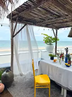 Every time I go to Hua Hin, there are cafes popping up like mushrooms. There are really a lot of cafes. And this is another cafe that we read reviews from and most importantly, many influencers stop by here. It's a small shop by the sea that everyone will definitely fall in love with. Or another name is Chaplu Cafe. Pin it and you won't get lost because this place is in the hotel. #100 ways to travel