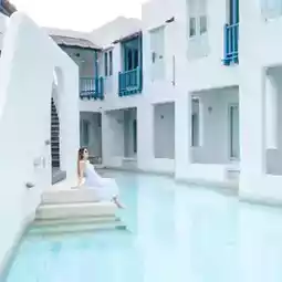 This is a Santorini-style accommodation in Hua Hin, Thailand.
