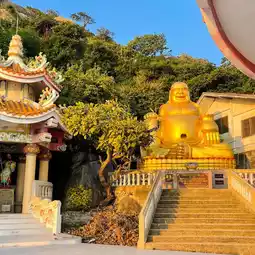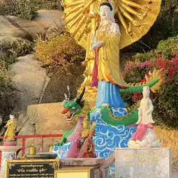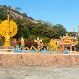 Khao Takiab Temple is unique as it is located by the sea, allowing you to enjoy sea views all day long, whether it's during sunrise or in the evening when the soft sunlight reflects off the water, giving a peaceful and relaxing feeling ✨. Additionally, there is a large Buddha statue and a Guan Yin shrine where people often come to pay their respects and pray for good fortune 🙏.