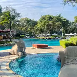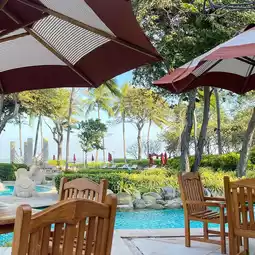 Hyatt Regency Hua Hin is the perfect place for those looking for luxury and relaxation. The hotel is located right on the beach, with a quiet and shady atmosphere. 🌴 The swimming pool here is really the highlight because it is wide and has an attractive design. There is also a poolside seating area for us to fully chill. ☀️