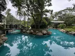Located in the Khao Takiab area, this luxurious hotel and resort offers a wide and beautiful beach with a view of Khao Takiab. The swimming pool here is large and spacious with multiple sections including a children's pool, an adult pool, and a jacuzzi, ensuring it never feels crowded. The resort is surrounded by lush greenery, providing a cool and comfortable atmosphere. There is also a koi pond where guests can feed the fish. Other activities include table tennis, tennis, archery, fitness, sauna, and pool table, making it an ideal place for family relaxation. The resort is fully equipped with amenities and offers excellent service from the staff.