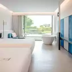We stayed in a twin room. The room is spacious and beautifully decorated, with a bathtub to enjoy the view. The hotel is located near Khao Takiab Beach, perfect for a seaside stroll.