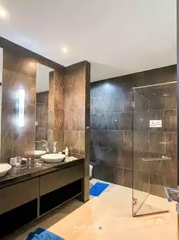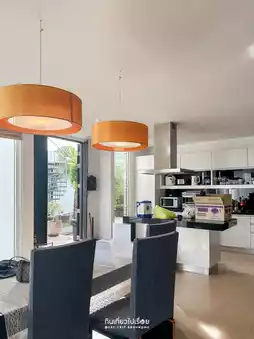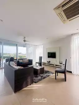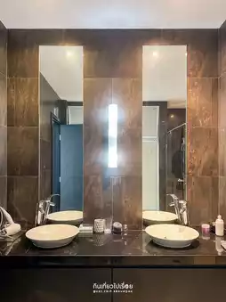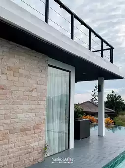 But once you get in, you don't feel like going anywhere because the house is much better than you thought. The interior design combines modern and warm perfectly. This house is divided into 2 sides. The design is similar. There are 5 bedrooms in total. The highlight that you shouldn't miss is watching the sunset from the villa balcony. The house we stayed in had a 2nd floor. Buy food to cook and eat together. It's another kind of fun. The price for a Saturday night stay is around 10,000 baht.