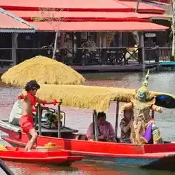 But now it's back again. There are many shops, both riverside and land zones. There are many types of restaurants, clothes and souvenirs. It's suitable for relaxing on a holiday. There is a tram that takes you around the market, live music and traditional Thai singing. It's recommended to come in the morning when the weather is not hot.