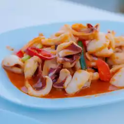 Squid Stir-fried with Salted Eggs. Everyone who goes there must try it. It's so good.