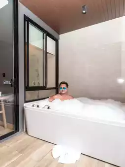 Soak in the water, get a massage, enjoy the view, sip tea or read a book all day.