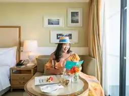 🛌 The room is spacious, the bed is comfortable, the proportions are perfectly arranged. Looking out to see the green garden atmosphere, a large swimming pool, very quiet and good for the heart