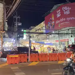 Hua Hin Night Market, located in the center of Hua Hin, is a good place to eat and buy food. It offers a variety of snacks, and you can also buy Thai milk tea for only 20 baht. Many people come here to eat seafood, and the most popular item is lobster, which costs about 1,000 baht per piece. There are also many souvenirs and small items for sale, and there are bars providing live music, so it is very lively every night.