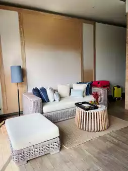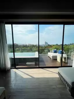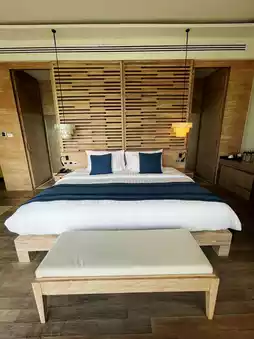 Cape Nidhra Hua Hin is a small hotel located on Hua Hin beach. Every room has a private pool. The room we stayed in had a garden view, which was very refreshing and pleasant. The pool villa is of a decent size, perfect for couples. The room is very spacious, the bed is soft and comfortable, and there is a large bathtub that even tall people can comfortably soak in. The room is fully equipped with amenities, and the staff provides excellent service, as expected from a 5-star hotel. The breakfast is generally good, though some items may not suit everyone's taste, but it's not a big issue. You can walk from the hotel to Hua Hin beach. For dinner, you can dine at the hotel while enjoying the sea view from the restaurant. It's a relaxing experience and a great option for accommodation in Hua Hin, especially for couples.