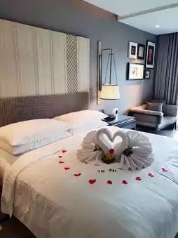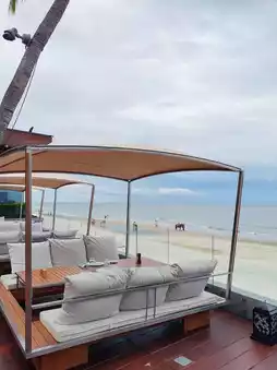 Had the opportunity to celebrate our anniversary at the Marriott Hua Hin hotel. I must say I was impressed from the moment I stepped into the hotel. All the staff have a great service mind. Starting with a welcome drink, the staff showed us to our room. We requested an anniversary celebration, and they arranged it as requested. My partner was beaming with joy. The room was fully equipped with amenities. Looking out from the balcony, we could see the pool and the lush green garden, which was very relaxing. The beachfront area was also nice, providing a peaceful atmosphere. However, on weekends, there might be a lot of kids, so it could get a bit noisy. The pool here is very inviting, and kids would love it. They even offer free popsicles. We had dinner at the hotel's restaurant, which was delicious and very romantic.