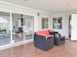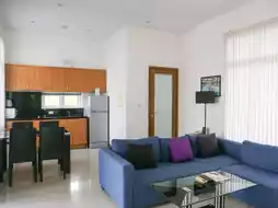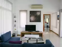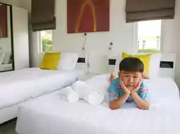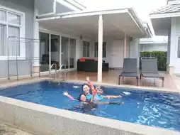 The accommodation is a pool villa with 1-3 bedrooms. Our house has 2 bedrooms. The house is spacious, clean, and has 1 living room and 3 bathrooms. The area in front of the house and the swimming pool is very chill. The saltwater pool is not very deep. The kids had a great time playing in the water. The facilities are complete, including a TV, refrigerator, microwave, and eating utensils. It is very suitable for families.
