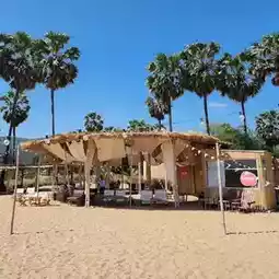 A cafe by the sea in Hua Hin, decorated in a vintage style, with a comfortable seaside seating area. For coffee lovers, you can choose. There are both Thai and foreign coffee beans and bakery for you to choose according to your preferences. The cafe also has a walkway down to the beach for us to walk down and chill.