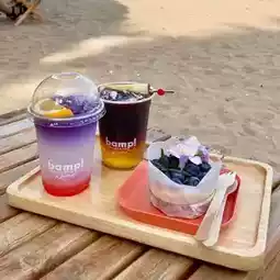 Another awesome seaside cafe that is not far from both Pranburi and Hua Hin. BAMP shop, the name of the shop comes from the words Beach + Camp because this place is a super chill seaside camp cafe. Let me tell you that anyone who really likes camping must come because the atmosphere is super chill, whether it's the beautiful sea in front of you, the beautiful decoration of the shop, or the music, drink menu, and desserts that are all awesome like this, you have to go.