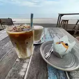 Another super chill cafe that if anyone has the chance to come along Cha-am, you must stop by to relax, order drinks and snacks. It is also another check-in point with many photo spots. There are many menus to choose from. The highlight is the seats next to the seaside window, like a picture frame. If anyone takes a picture and posts it on social media, it will be a big hit. If anyone has the chance to check in, I guarantee you won't be disappointed.