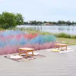 A Hua Hin cafe with a photo corner with a mountain view ⛰✨ and a reservoir. The view is very good!!! The shop is beautifully decorated. There are many photo corners. No matter where you look, it's great. There are also rentals of Hanbok / princess dresses.