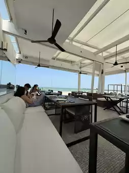 Oceanside Beach Club and Restaurant is a charming cafe and beach club with a clean white tone that contrasts beautifully with the blue sea view, creating a relaxing and refreshing atmosphere. The cafe is designed to be airy and breezy, ensuring comfort even without air conditioning. There’s a swimming pool nearby, and the menu offers a wide variety of food and drinks, including both Thai and international cuisine. The cafe is stunning, with photo-worthy spots everywhere, perfect for catching the light and breeze. The staff provides excellent service. If you're visiting Hua Hin and looking for a picturesque cafe to take photos, create content, or simply unwind, this place ticks all the boxes. Great food, drinks, views, lighting, and breeze.