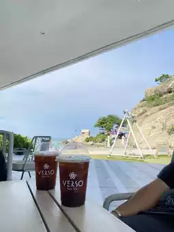 Today, we will take everyone to cool off at a famous cafe in Hua Hin, which is Verso Hua Hin. The atmosphere is next to the beautiful sea, the wind is cool and comfortable, and you can watch the barista make coffee in the shop. It smells so good and smooth. 🌴🎯