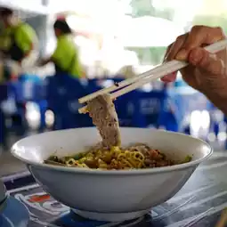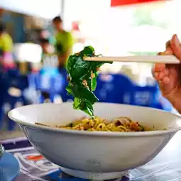 🍝 Ancient recipe pork noodles, Tom Yum with morning glory, Hua Hin is a shop selling Tom Yum noodles with a spicy and old-fashioned flavor. The highlight is the well-rounded Tom Yum soup, sour, spicy, salty, sweet, and perfectly balanced. The minced pork and offal are clean and have no fishy smell. The noodles are chewy and soft. The highlight is the freshly fried pork rinds, crispy and delicious, which you can order more. Anyone who likes Tom Yum noodles with a rich and satisfying flavor should not miss this shop when visiting Hua Hin.