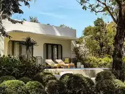 💦 The highlight here is the 'swimming pool', which is designed with bright yellow umbrellas and canvas beds, contrasting the color of the sky and water in the pool very well. The atmosphere amidst the green of large trees and the Hua Hin beach... It is truly a corner that everyone who comes here must come to take pictures.