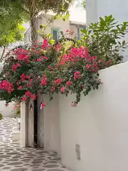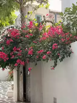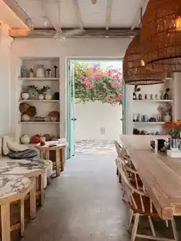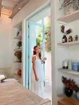 The blue and white colors contrast with the pink of the bougainvillea tree is so cute 🌸🍃 The interior of the shop is beautifully decorated, very soft, you can take photos from every angle