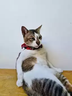 Baan Aitim Kon Ong Icecream & Cat Cafe is a cat cafe in Hua Hin, Prachuap Khiri Khan Province. There are both air-conditioned and outdoor areas, but the cats are in the air-conditioned area. However, if you enter the area, they will ask you to wear socks. If you don't bring your own, the shop sells them. The cats are very playful, especially the baby cats. They come to visit us all the time. There is one cat outside. There is a sign that says it is fierce. We tried touching it and almost got bitten. We believe that it is really fierce, but it is cute.