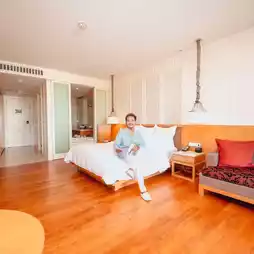 We recommend staying in the Beach Wing's CLASSIC ROOM OCEAN VIEW. These rooms, ranging from 54-65 sqm, offer breathtaking ocean views. Equipped with full amenities, including a bathtub, the room also features an outdoor balcony with a large sofa bed for relaxing and enjoying the beautiful sea view. This room provides a high level of privacy.