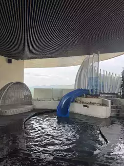 ๐๏ธ Environment/Facilities: The environment is clean and hygienic, featuring a stunning rooftop infinity pool, a sky bar, and a skywalk with breathtaking views. The hotel also offers a kids' playroom, arcade games, and various craft classes to keep children entertained. Conveniently, the water park is located right downstairs, and staying at this hotel includes two days of unlimited access to the water park! However, note that snacks, water, and drinks are not allowed inside the water park.