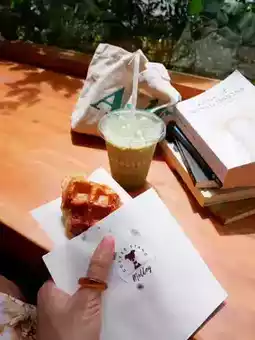 🥯 “Molley coffee stand” cafe, a cute cafe with delicious desserts in Soi Hua Hin 37. The shop is a small shop, not very big, with 3-4 tables outside. Decorated in a cute minimalist style with small items as decorations, very cute. There are both coffee and non-coffee drinks. There are also a few breads to choose from. We got a croissant to eat with green tea, which was delicious and went well together. There is a large parking lot, so don't worry. It is suitable for stopping by a cafe before checking into the hotel.