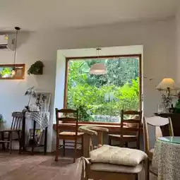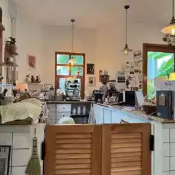 A small, cute, and very homey cafe. The cafe is a white house decorated with wooden furniture that matches perfectly, giving it a warm atmosphere. It feels like you're hanging out at a friend's house. There are many photo spots. This is a cafe that can be described as cute. Every time I visit Hua Hin, I have to stop by. There are many drinks and desserts to choose from. Most importantly, they're very delicious! 💕