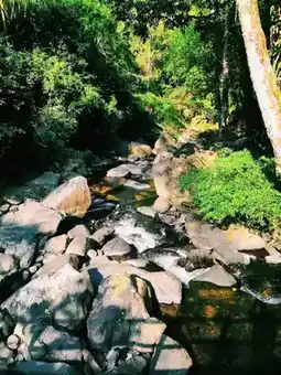 Large, green trees, many small and large butterflies, especially in the morning, and there are fish swimming on the lower level, standing sexy and biting your feet in a cute way.