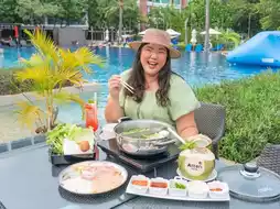 😋 Every restaurant offers a delicious menu, whether it's the stunning Afternoon Tea set for a relaxing afternoon with delicious pastries or the shabu-shabu with spicy salads and various Thai dishes by the pool. The breakfast buffet is extensive and offers a wide selection.