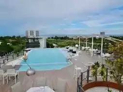 The hotel is conveniently located on Phetkasem Road with underground parking for several cars. After checking in, you'll receive a welcome drink coupon that you can redeem at the bar on the 7th floor, the highest floor. Besides the bar, this floor also has a fitness center, swimming pool, and archery range. We went up in the evening and it was so relaxing. You can even see the distant sea view.