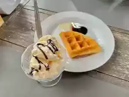 Breakfast was standard, and there was also ice cream.