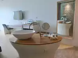 The room is larger than 42 square meters and has a balcony with a relaxing seating area and a Jacuzzi. I really liked it! I could soak in it for a long time. The room was clean, spacious, airy, and very comfortable. There was even a stuffed whale for us to cuddle and play with. All amenities were available, but some were not provided in the room. Additional amenities are available upon request, such as toothpaste, toothbrush, comb, and razor.