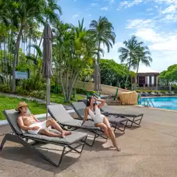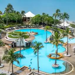 #The highlight is the large outdoor pool at the front of the resort, right next to the beach access. The atmosphere is shady and inviting. There are plenty of sunbeds around the pool, including both children's and adult pools, a waterslide, and a pool bar.