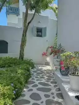 Stay at De Paskani Resort for the Greek-island-inspired vibe. Rooms are decorated in soft whites and blues, keeping the Mediterranean mood. It’s quiet, cozy, and intimate – best for a chill holiday rather than nightlife.