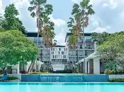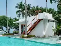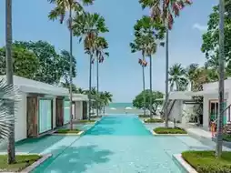 Facilities & Services. The resort boasts a range of amenities designed for relaxation and convenience: Swimming Pools: Includes a beachfront infinity pool, villa pools, and a children's pool. Spa: Offers treatments overlooking the Gulf of Thailand. Fitness Center: Open 24 hours with cardio and weight training equipment. Lobby Lounge & Roof Deck: Modern decor with art pieces and spaces for private dining or gatherings. Restaurant – GOAT: Service.