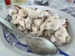 I had the chance to try a famous restaurant in Hua Hin. No wonder it's so popular. This classic, green-and-white restaurant is spacious and seaside, set in the style of an old wooden house on the beach in Hua Hin. It's classic, shady, and clean, from the front of the house to the actual food. I was impressed by the exterior, but the interior was also clean, beautiful, and orderly. The staff were incredibly attentive, even more impressive.