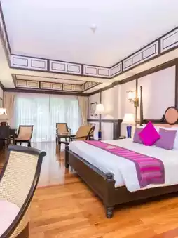 Wora Bura's rooms are luxuriously decorated and spacious, with private balconies where you can relax and enjoy sea or garden views. There's also a large swimming pool that stretches along the beach, along with a spa, fitness center, and a restaurant serving Thai and international cuisine.