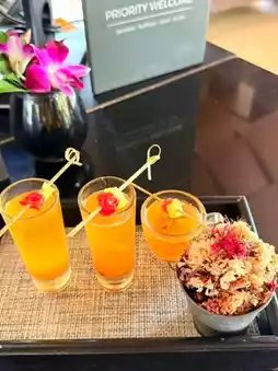 Mövenpick Asara Resort & Spa Hua Hin is a large beachfront hotel with a serene and lush atmosphere. It features a restaurant, bar, fitness center, spa, and swimming pools, offering complete amenities. The resort is divided into two main zones: the suite zone and the villa zone. Both suites and villas provide privacy. While waiting at the check-in area, the staff served welcome drinks, including passion fruit juice and strawberry juice. It was our first time at Mövenpick Hua Hin, and we were excited, taking photos all around the resort. If you're ready, let's dive into this review.