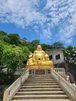 Wat Khao Takiab, perched majestically on a mountain, offers a reward for travelers like us. Upon reaching it, you'll not only pay homage to the sacred objects, but also be mesmerized by the panoramic view of Hua Hin Bay and the azure sea that stretches to the horizon, miraculously warding off the fatigue of driving.